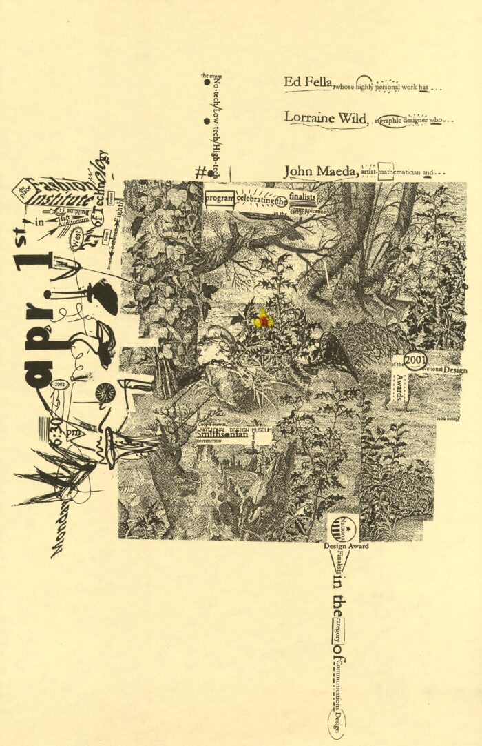 Front and back of a flyer for a lecture (which happened to be on April Fools Day) by the three finalists for the 2001 National Design Awards.