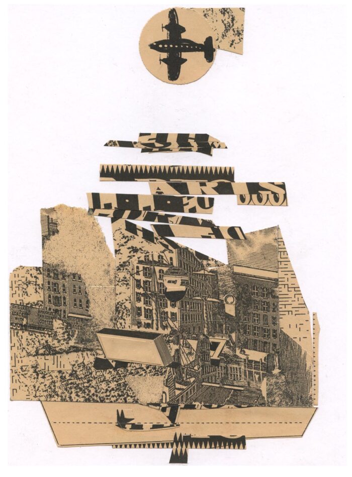 All in a days work: a collage (from a discarded 2006 flyer) a drawing/collage (from previous laser prints of the same overall drawing) and, finally, from my car on the way out of the CalArts campus where I have my studio)...